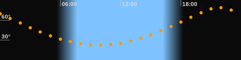| Höchster Stand (Kulmination) | 21:50 Uhr (h = 78,9°) |