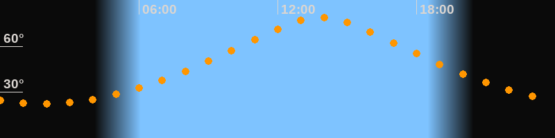 | Höchster Stand (Kulmination) | 13:51 Uhr (h = 78,9°) |