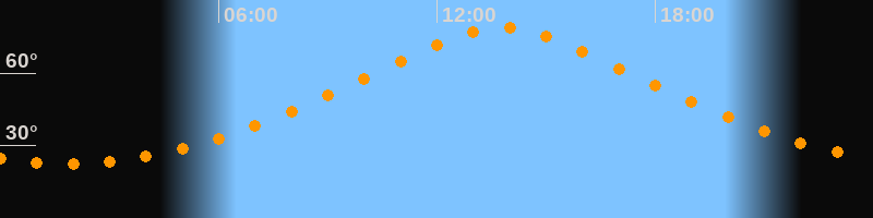 | Höchster Stand (Kulmination) | 13:47 Uhr (h = 78,9°) |