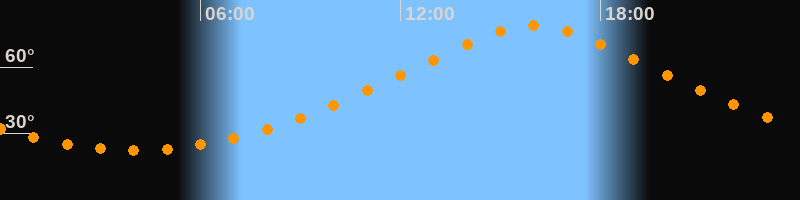 | Höchster Stand (Kulmination) | 16:00 Uhr (h = 78,9°) |