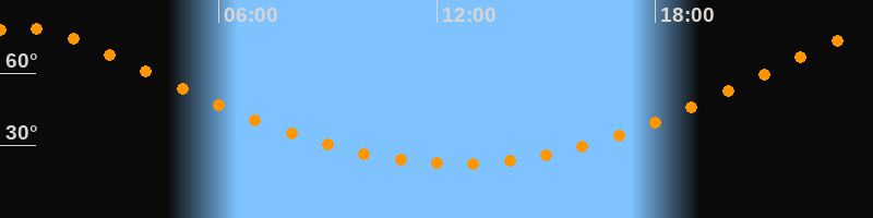 | Höchster Stand (Kulmination) | 00:32 Uhr (h = 78,9°) |