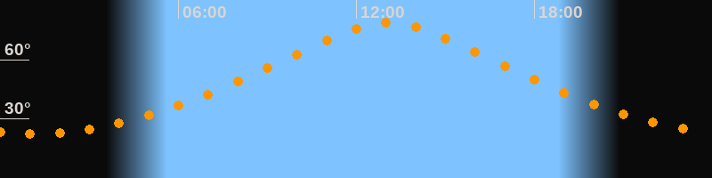 | Höchster Stand (Kulmination) | 13:04 Uhr (h = 78,9°) |
