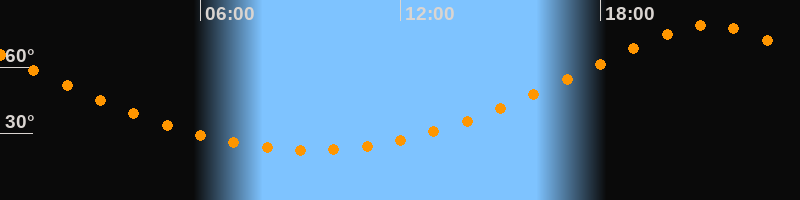 | Höchster Stand (Kulmination) | 21:17 Uhr (h = 78,9°) |