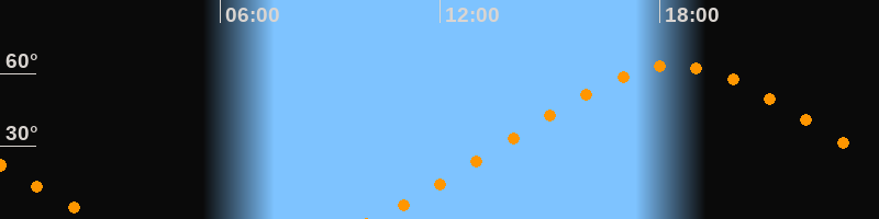 | Höchster Stand (Kulmination) | 18:23 Uhr (h = 63,2°) |