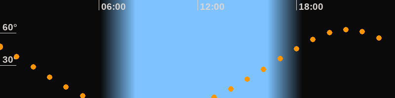 | Untergang | 05:23 Uhr im Nordwesten (αAz = 310,8°) |