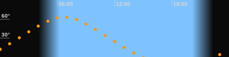 | Höchster Stand (Kulmination) | 06:41 Uhr (h = 63,2°) |