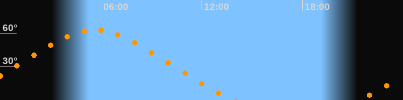 | Höchster Stand (Kulmination) | 05:38 Uhr (h = 63,2°) |