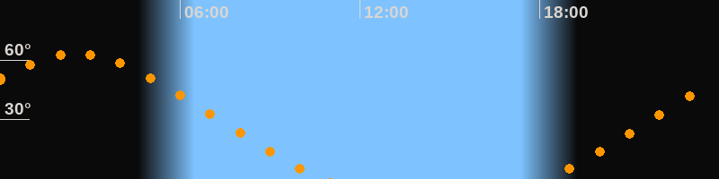 | Aufgang | 18:14 Uhr im Nordosten (αAz = 49,2°) |
