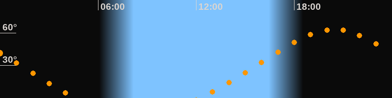 | Aufgang | 12:10 Uhr im Nordosten (αAz = 49,2°) |