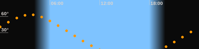 | Untergang | 11:54 Uhr im Nordwesten (αAz = 310,8°) |