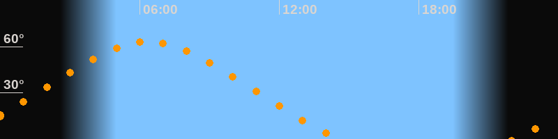 | Höchster Stand (Kulmination) | 06:21 Uhr (h = 63,2°) |