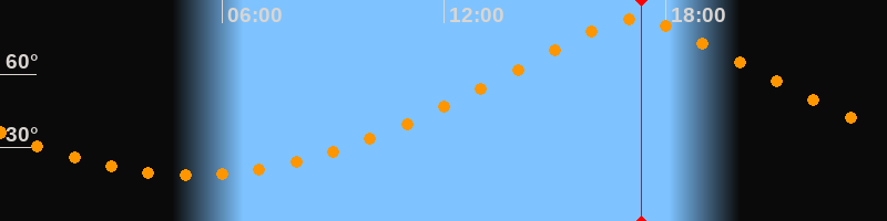 | Höchster Stand (Kulmination) | 17:11 Uhr (h = 82,5°) |