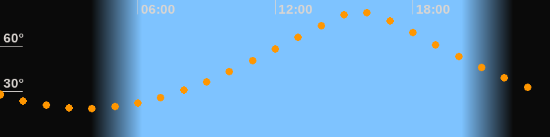 | Höchster Stand (Kulmination) | 15:41 Uhr (h = 82,5°) |