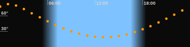 | Höchster Stand (Kulmination) | 01:11 Uhr (h = 82,5°) |