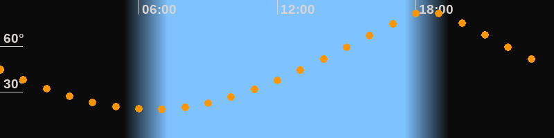 | Höchster Stand (Kulmination) | 18:30 Uhr (h = 82,5°) |