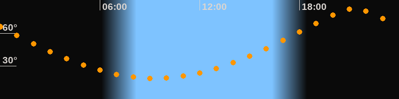 | Höchster Stand (Kulmination) | 21:16 Uhr (h = 82,5°) |