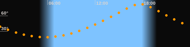| Höchster Stand (Kulmination) | 17:40 Uhr (h = 82,5°) |