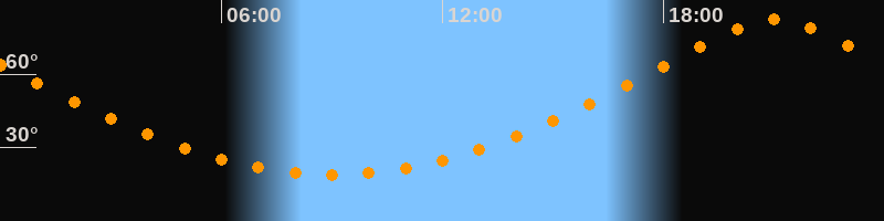 | Höchster Stand (Kulmination) | 21:02 Uhr (h = 82,5°) |