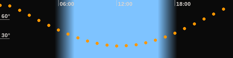 | Höchster Stand (Kulmination) | 00:19 Uhr (h = 82,5°) |