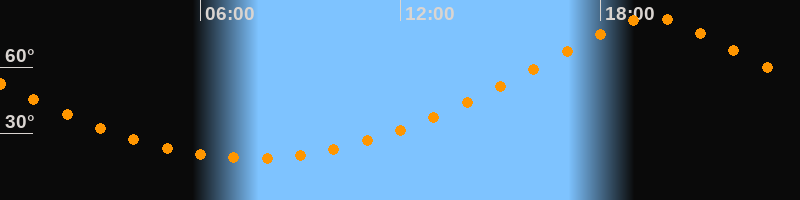 | Höchster Stand (Kulmination) | 19:32 Uhr (h = 82,5°) |