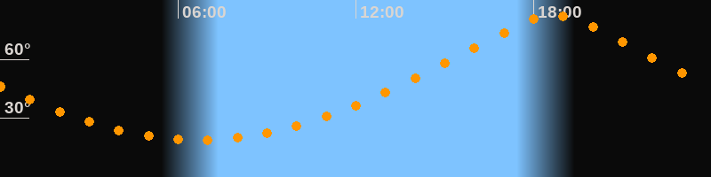 | Höchster Stand (Kulmination) | 18:41 Uhr (h = 82,5°) |