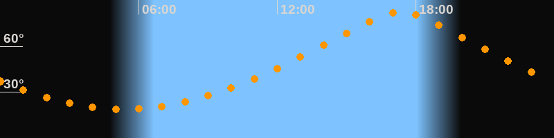 | Höchster Stand (Kulmination) | 17:19 Uhr (h = 82,5°) |