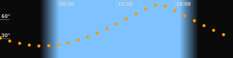 | Höchster Stand (Kulmination) | 16:18 Uhr (h = 82,5°) |