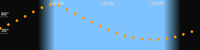 | Höchster Stand (Kulmination) | 06:18 Uhr (h = 82,5°) |
