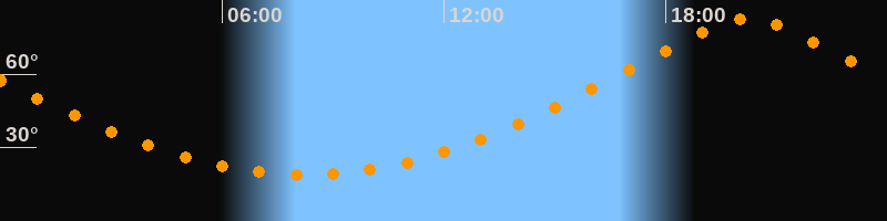 | Höchster Stand (Kulmination) | 20:13 Uhr (h = 82,5°) |