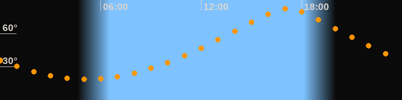 | Höchster Stand (Kulmination) | 17:08 Uhr (h = 82,5°) |
