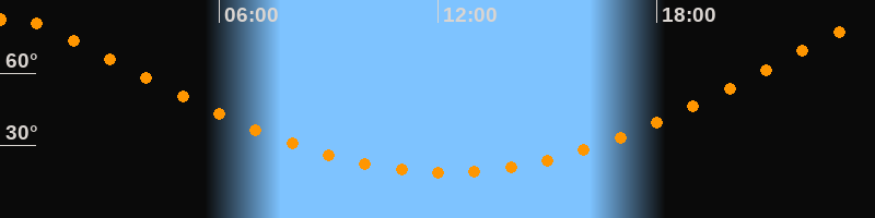 | Höchster Stand (Kulmination) | 00:14 Uhr (h = 82,5°) |