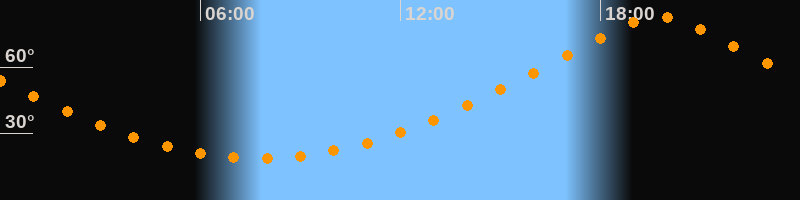 | Höchster Stand (Kulmination) | 19:45 Uhr (h = 82,5°) |