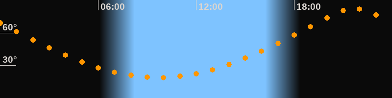 | Höchster Stand (Kulmination) | 21:40 Uhr (h = 82,5°) |