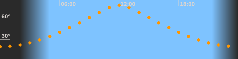 | Höchster Stand (Kulmination) | 11:59 Uhr (h = 82,5°) |