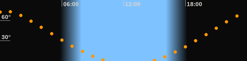 Höchster Stand (Kulmination)00:31 Uhr (h = 73,6°)