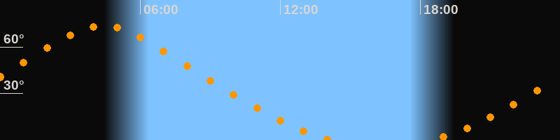 Höchster Stand (Kulmination)04:22 Uhr (h = 73,6°)