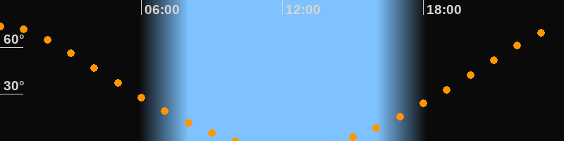 Höchster Stand (Kulmination)00:11 Uhr (h = 73,6°)