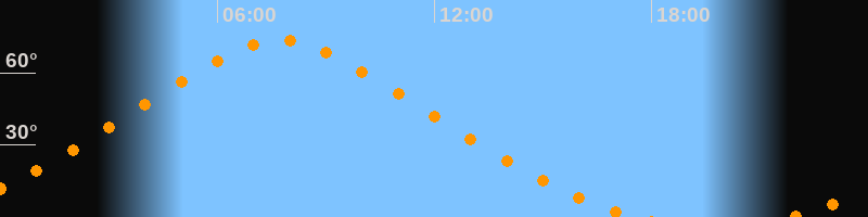 Höchster Stand (Kulmination)07:44 Uhr (h = 73,6°)