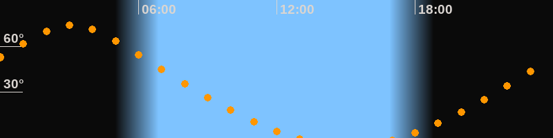 Aufgang17:09 Uhr im Nordosten (αAz = 25,4°)