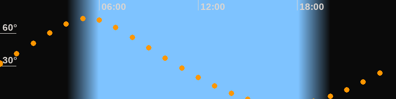 Aufgang19:19 Uhr im Nordosten (αAz = 25,4°)