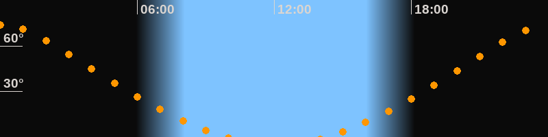 Höchster Stand (Kulmination)00:02 Uhr (h = 73,6°)