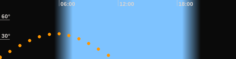 | Höchster Stand (Kulmination) | 05:41 Uhr (h = 38,7°) |