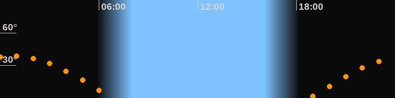 | Höchster Stand (Kulmination) | 00:46 Uhr (h = 38,7°) |