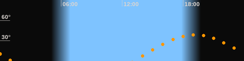 | Höchster Stand (Kulmination) | 19:09 Uhr (h = 38,7°) |