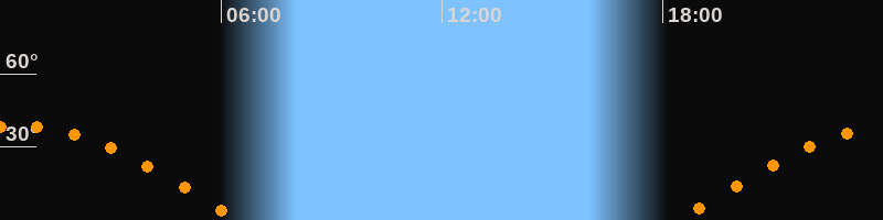 Höchster Stand (Kulmination)00:26 Uhr (h = 38,7°)