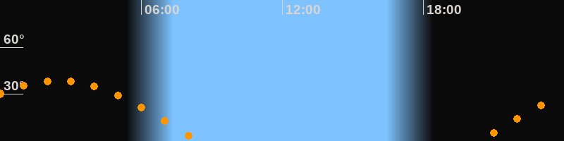 | Höchster Stand (Kulmination) | 02:26 Uhr (h = 38,7°) |