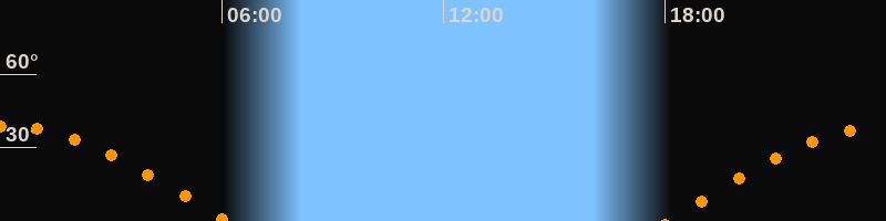 | Untergang | 06:08 Uhr im Westen (αAz = 269,9°) |