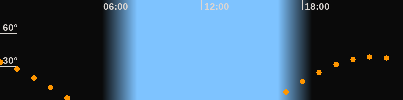 | Aufgang | 16:09 Uhr im Osten (αAz = 90,1°) |