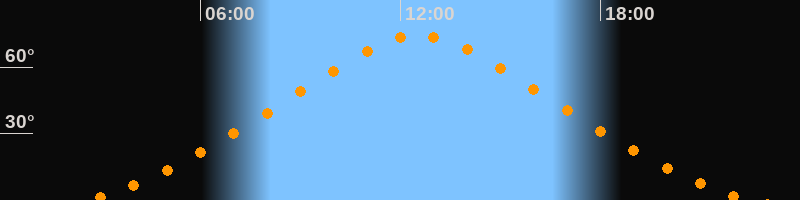 | Höchster Stand (Kulmination) | 12:33 Uhr (h = 74,2°) |