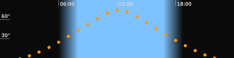 | Höchster Stand (Kulmination) | 12:09 Uhr (h = 74,2°) |
